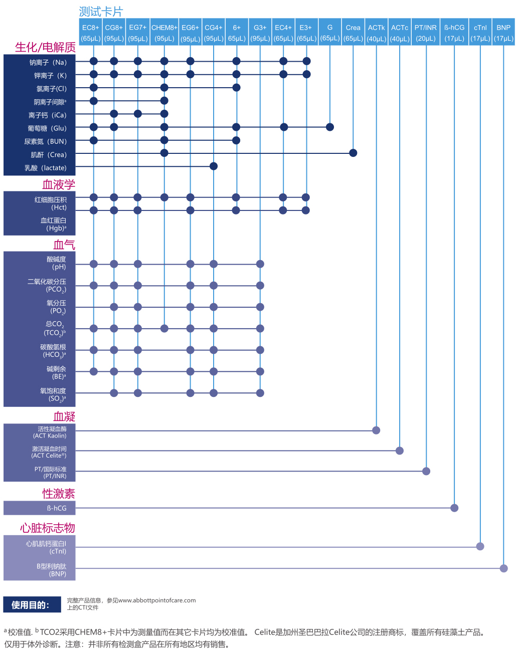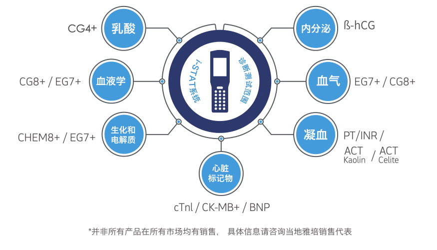 i-STAT作为即时检测设备,通过同一平台提供完善的检测菜单,包括了实验室中常见的测试项目
