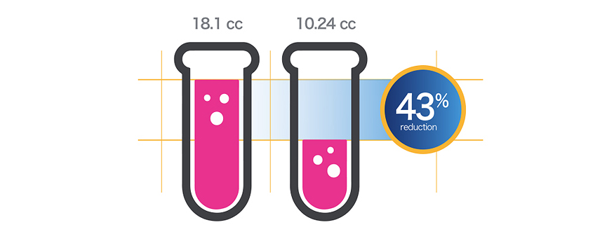 iSTAT系统采血量仅为95ul(2-3滴),较常规检测降低血液损失达43%,避免诊断性失血。